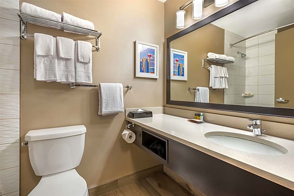 Convenience is woven into the stay, with a 24-hour front desk ready to assist at any hour, free toiletries, bathtubs, beach chairs/loungers, and elevator access to upper floors. Free Wi‑Fi plus free private parking keep devices online and plans on track, making it easy to navigate Calgary’s urban playground from a solid home base.